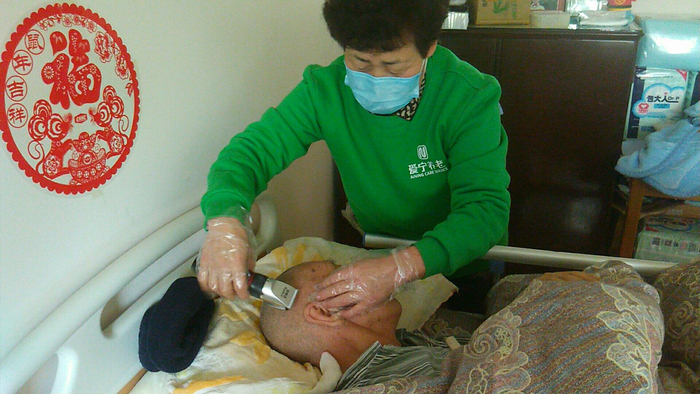 护理员为刚需老人提供照护服务(爱君为老服务中心 供图)