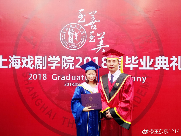 2018年,王莎莎拿到上戏表演系硕士学位。