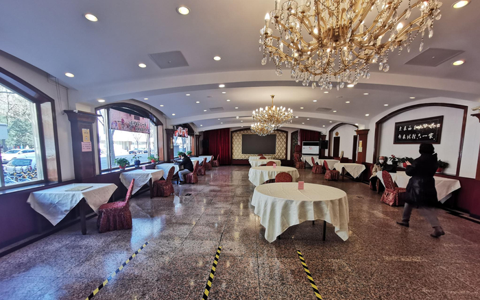 砂锅居店里500多个餐位,现在只留下了10多个,除了每客一桌,店里还用屏风对大厅进行了分割。受访者供图
