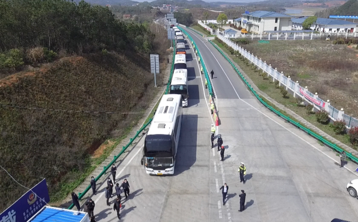 湖北蕲春县组织复工专车送打工者直接到厂返岗