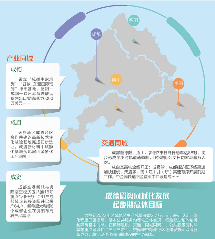 紧扣国家推动成渝地区双城经济圈建设总体部署,成都与德眉资3市将循序渐进、分阶段推进同城化发展。