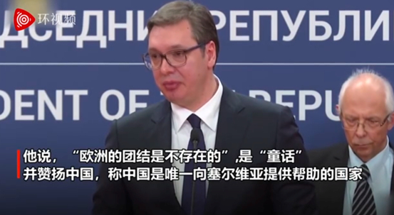 当地时间3月15日,塞尔维亚总统武契奇发表电视讲话,宣布塞尔维亚当即进入紧急状态。期间武契奇强调,困难来临之时,我们不能寄希望于欧盟,“欧洲的团结是不存在的”,是“童话”,唯一会向塞尔维亚伸出援助之手的只有中国。