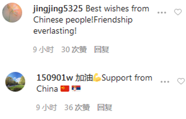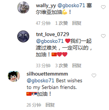 也有中国网友用英语和汉语留言,为塞尔维亚加油打气。