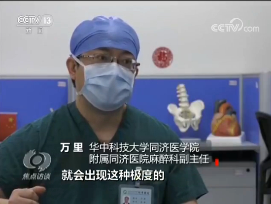 华中科技大学同济医学院附属同济医院麻醉科副主任万里说:“新冠肺炎可能大多数是轻症,但有一部分是重症的,还有危重症的,就会出现极度呼吸困难,低氧血症,需要进行通气治疗,包括无创的通气,包括有创的机械通气。一旦做有创的通气了,就必须麻醉医生来进行气管插管。”
