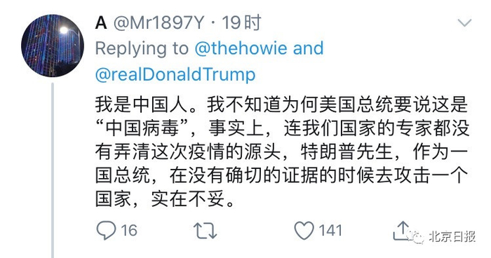 特朗普的这一做法也遭到中外网友“怒怼”。不少网友认为其将病毒根源转嫁到中国,目的是掩盖其抗疫工作不力。