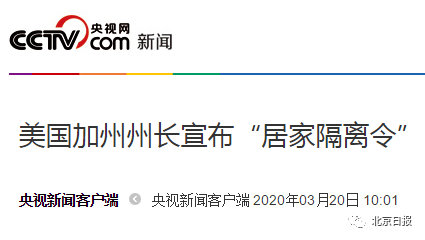 据央视新闻客户端消息,美国加州州长加文·纽瑟姆 (Gavin Newsom)19日晚宣布“居家隔离令”,要求该州4000万居民待呆在家中不要出门,以防止新冠肺炎疫情蔓延。