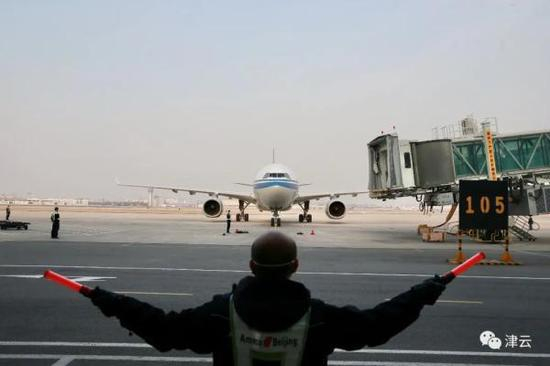 这是天津,自3月19日民航局、外交部、国家卫生健康委、海关总署、移民局联合发布《关于目的地为北京的国际客运航班有关事宜的公告》后,作为指定第一入境点迎接的首班赴京国际航班。