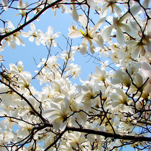 “绰约新妆玉有辉,素娥千队雪成围。”漫长寒冬过后,玉兰在春季竞相绽放,远望去满树洁白,如雪涛落玉,分外妖娆。