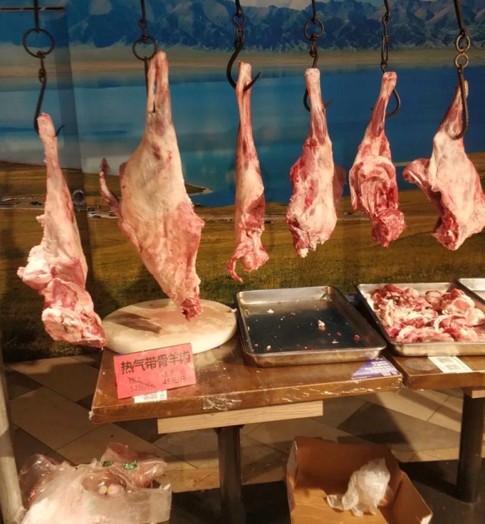记者注意到,餐厅缩减的座位区辟出了新的一角——“新零售”。“受疫情影响,客流骤减,我们变换方式开展自救,开了新零售店。”龚青说。新零售店主要售卖的是蔬菜和各种牛羊肉,新疆特色很浓,还有自制的馕、牛肉包、馒头、水饺,最惹眼的就是热气腾腾的现烧手抓羊肉,现切现卖,性价比非常高,比如羊腿肉45元/斤,羊法排54元/斤,新疆烤馕5元/个。一位顾客在这里选了一块羊排和一块牛腱,称赞道:“东西很赞,价廉物美,店家还送了我两小盒孜然。”