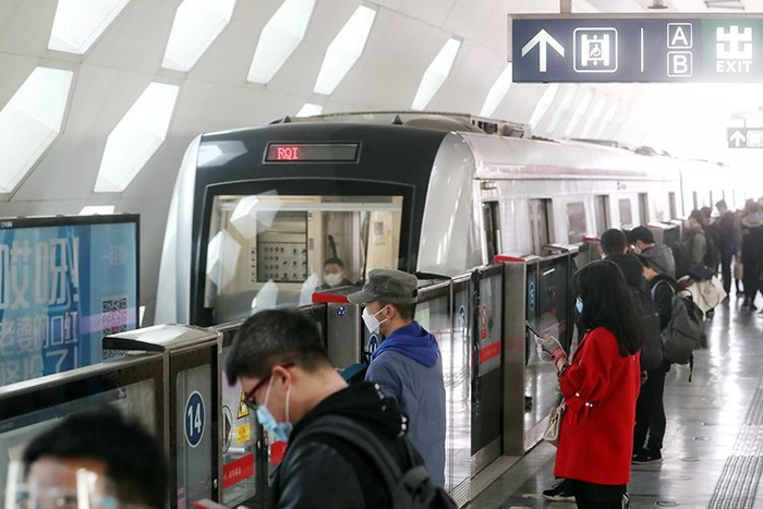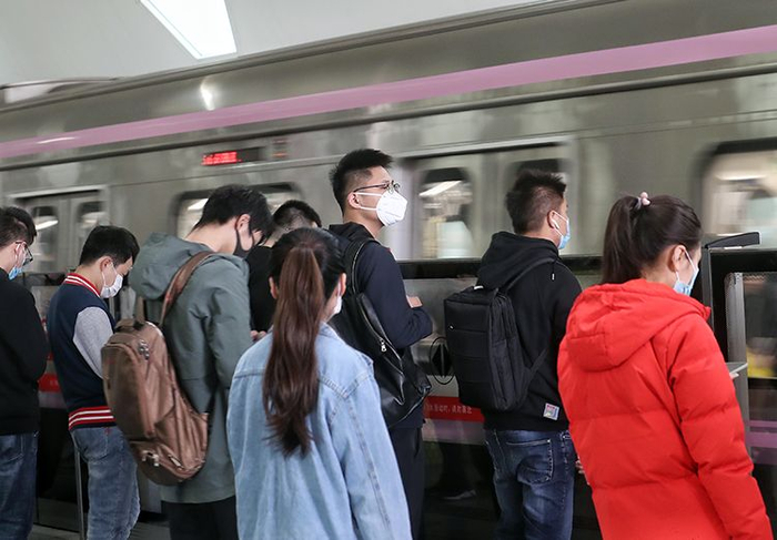 市民排队乘坐地铁。