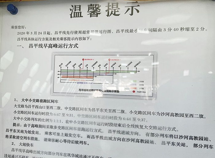 昌平线沙河高教园站,“超常超强列车运行图”温馨提示。