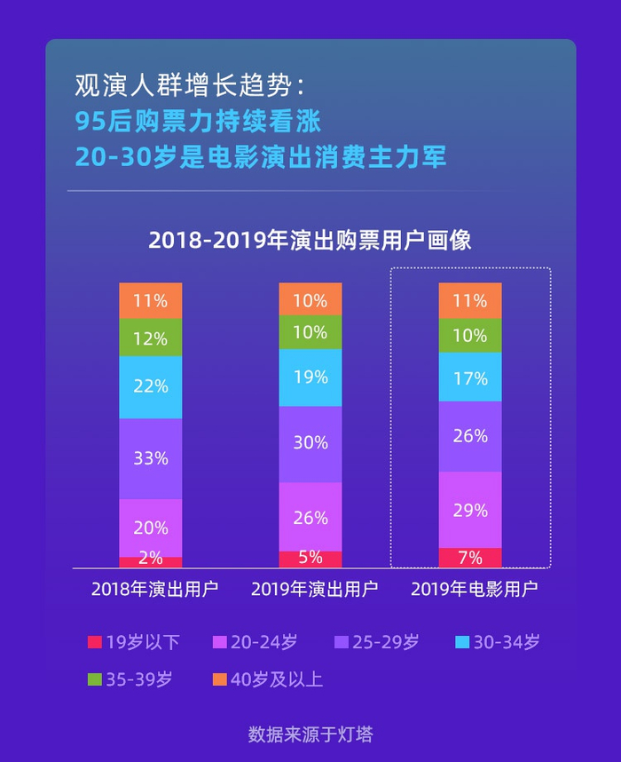 新京报讯(记者 刘臻)3月25日,已服务过100余个电影演出剧综项目的数据服务和研究品牌灯塔研究院,首次发布演出行业大数据,数据显示,2019年中国演出票房迈入200亿大关,同比增长7.29%,票房增速赶超电影市场。 值得一提的是,已有越来越多的用户会做出线下观影、观演双重选择。数据显示,去年线下电影、演出的用户重合度增幅达35%。 中国演出行业协会为本次数据报告提供了行业指导。