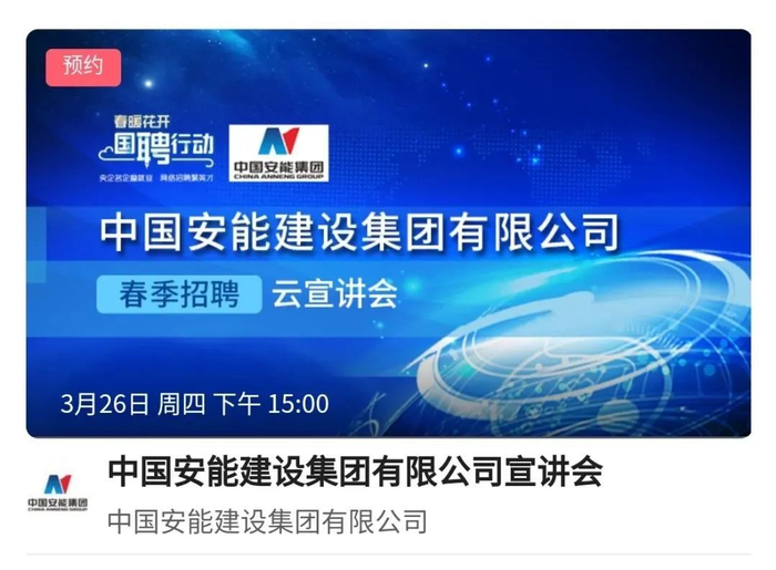 明天(3月26日),“春暖花开 国聘行动”云宣讲精彩继续,中国安能建设集团有限公司将在央视频App等你。下载央视频即可预约直播,还能在直播页面投递简历哦!
