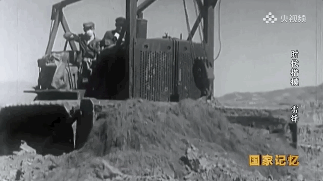 身高只有1.54米的雷锋坐着开车看不到前面的大铲子,他就站着开,常常累得腰酸腿疼从不言放弃,最终通过了推土机手的考核。