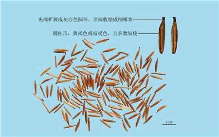 鹤虱:呈圆柱状,细小,长3~4mm,直径不及1mm。表面黄褐色或暗褐色,具多数纵棱。气特异,味微苦。杀虫,清热解毒,健脾和胃。治虫积腹痛,阴道滴虫。主产陕西、甘肃、山西、河南等地。
