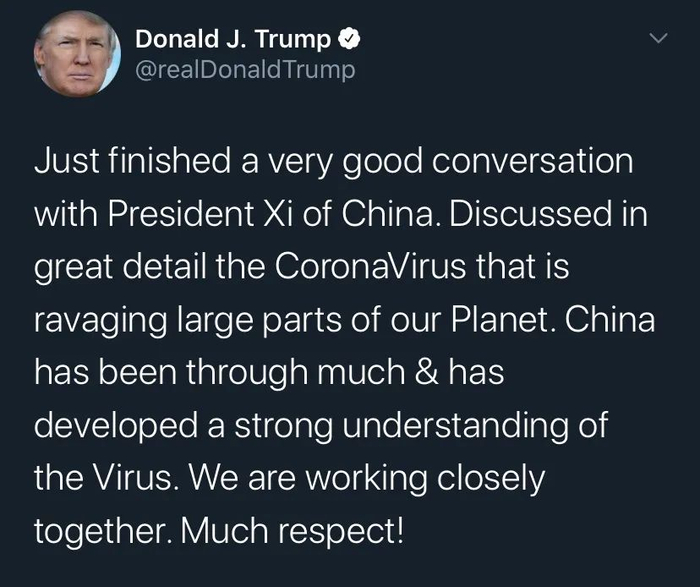 原标题:与习近平通话后,特朗普发了条致敬推!