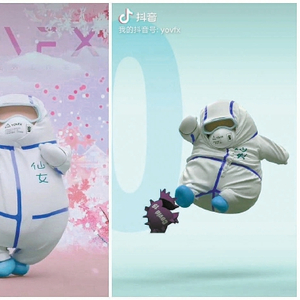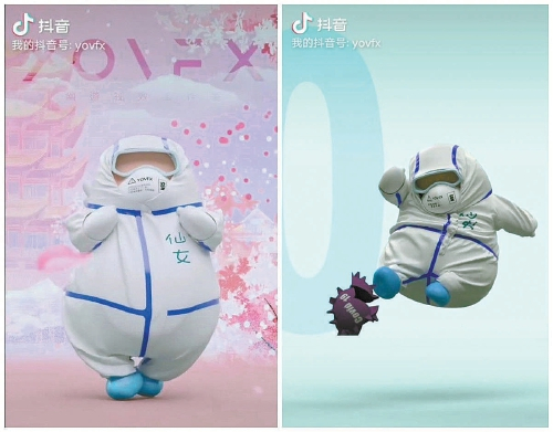 网友“YOVFX幽游视效”以身着防护服的医护人员为原型创作的卡通形象。