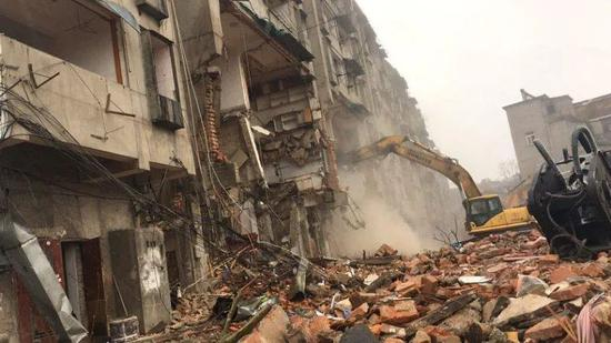 2月29日,为民宿舍楼强制拆迁现场。