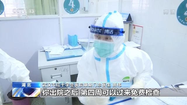 武汉市红十字会医院康复门诊医生 熊伟:根据我们国家的相关规定,隔离出院之后,第4周可以过来免费检查,主要就是核酸和CT,如果你原来CT有问题,我们还是要再复查一次的,我今天可以开的就是一个核酸,还有个CT。