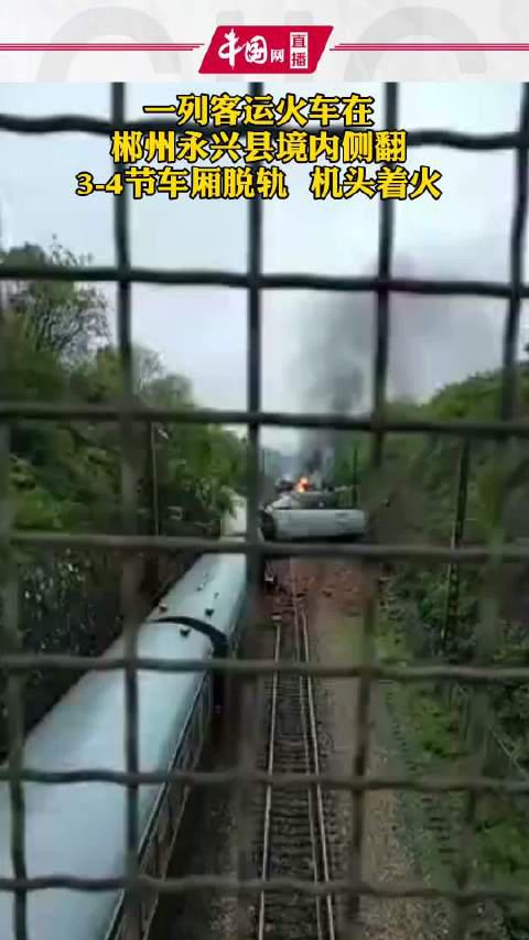 视频:一列客运火车在郴州永兴县境内侧翻:3-4节车厢脱轨、机头着火