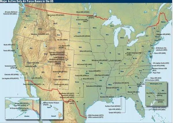 二战后,美国的军事存在几乎遍及全球,在世界各地建立的事基地曾达5000多个(其中近半数在海外)。冷战结束后,美军事基地的数量大大减少。目前美海外军事基地374个,分布在140多个国家和地区。