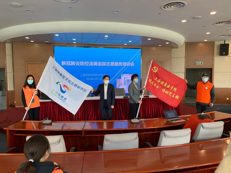 昨天上午举行的新冠肺炎防控流调追踪志愿服务首批志愿者培训会上,上海健康医学院党委副书记于莹和市文明办志愿服务工作处副处长俞伟共同为志愿者代表授予了临时党支部旗和“上海健康医学院志愿服务队”队旗,在市疾控中心开展的专业知识培训后,志愿者们便马上投入到了志愿服务中。