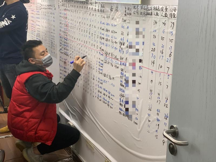 其余的视觉空间,被密密麻麻的数字、表格填满——一张张马克笔手写的表格,记录着每一例确诊患者的姓名、来沪航班、密切接触者数量等信息。不大的办公室里,十多位工作人员和志愿者围坐在长条桌旁,电脑、电话和一叠叠文件材料是每个人的“标配”。