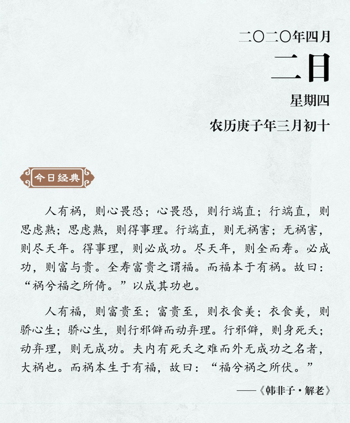 所以,能看到祸福的相互依存并且能把握其向对立面转化的条件,才是真正的大智慧。有此智慧,方可身处福禄之时,戒骄戒躁,常抱居安思危之心;困居祸厄之际,诚恳行事,永怀乐观希望之志。(阿阳)