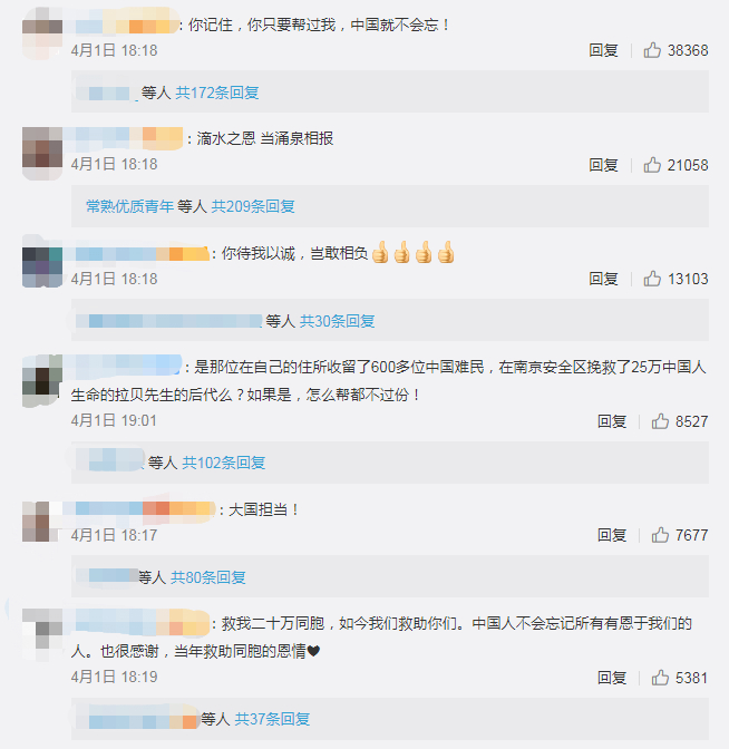 在德国疫情加剧之际,已成为海德堡大学妇产医院著名医生的托马斯·拉贝向在战疫过程中积累了成功经验的中国发来求援信。跨越80多年,中国人谨记“滴水之恩,涌泉相报”。