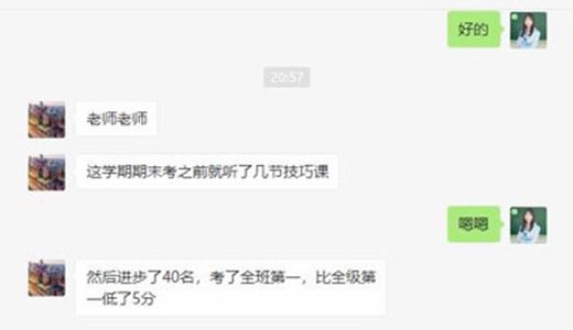 学生向作业帮老师报告英语成绩大幅提高的喜讯