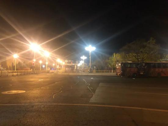 附近只有零星几位戴口罩的市民出现,询问何时开门。看过许多次升旗仪式的小伙伴告诉我,如果不是现在特殊情况,这个时间,前门附近早已停满大巴车,游客在导游的喇叭和小旗指挥下按序排队。