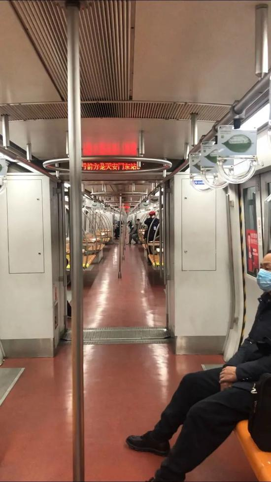 地铁站在安检处往西,我们逆着人流走了出去。万幸,刚走下地铁站台,1号线就缓缓驶入。