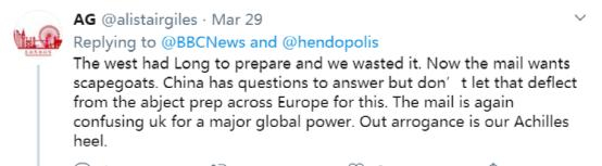 针对部分媒体和政客对中国的无端指责,英国民众在社交媒体上纷纷表示对中国政府抗疫举措的支持。