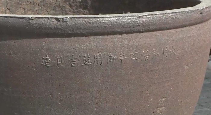 太和门前的水缸也是宫里最古老的一对,缸上的铭文注明了它的年纪:大明弘治四年制,已经500多岁了。殿前大缸有铜制有铁制,旧时称太平缸,也确实有保太平之意,因为它们的功能就是当时的消防设施:缸中装水,用来灭火。为防止冬季结冰,底下石座可以打开,装入炭火小火加热,“熏缸化冰”,缸上还有盖子,四周用棉套捂住。现今在故宫还能看到带盖的太平缸,在外西路的隆宗门前。