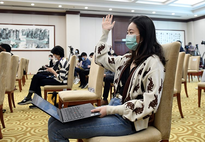 发布会上记者提问。
