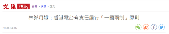 据香港“橙新闻”“ 文汇网”等媒体7日报道,林郑月娥表示,香港商务及经济发展局局长邱腾华早前已就香港电台节目问题发声明,她赞同及支持邱腾华在声明的立场,邱腾华会在下午的立法会财委会特别会议再度解释。林郑月娥说,香港电台既是公营广播机构,亦是政府部门,有责任履行“一国两制”原则,节目内容更要深化市民对“一国两制”的理解。