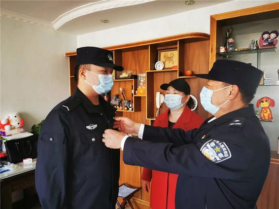 李国福和曹爱芹的儿子李安南是中国人民公安大学的大二学生,这次放假回家,父母都在防控一线,在完成学习任务后,这名“准警察”也主动请缨,主动担任社区联防联控的队员。他说,爸爸是警察,妈妈是志愿者,他们都在一线,我是预备警察,也要像他们一样,全家齐上阵,共同战疫情。这次经历也是一堂生动的社会实践课,我会终身难忘,将来成为一名正式警察后,能让我更好的尽职履责,服务人民。