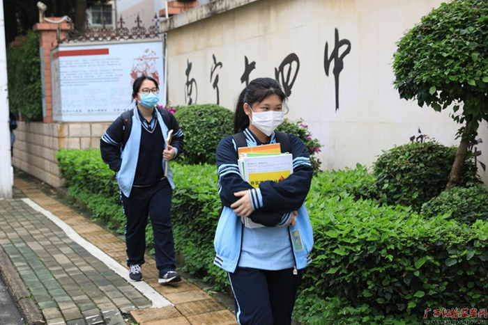 按照自治区的相关部署安排,结合疫情防控工作形势,区内各学校的高三和初三年级学生今日正式开学复课。开学第一天,南宁市各中学秩序井然,各项工作有条不紊。学生有序接受体温检测,分批进入教室、开展校园环境清洁消毒、防控物资和设施保障、隔桌就座上课、定点定位错峰就餐......一系列抓紧抓实抓细的防控举措和全面督导检查,全力保障师生生命安全和身体健康。(南宁市纪委监委驻市教育局纪检监察组)