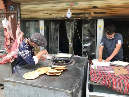 前一天,有小区门口边上停靠着一个辆车,车前摆放鲜鱼,等候顾客来拣选。街角处,那个从2月初就没有羊肉可卖的新疆烤串店,在店外挂上了两只洗剥干净的小羊,两位普通话说得不利落的老板正专心致志地烤馕,香气四溢。