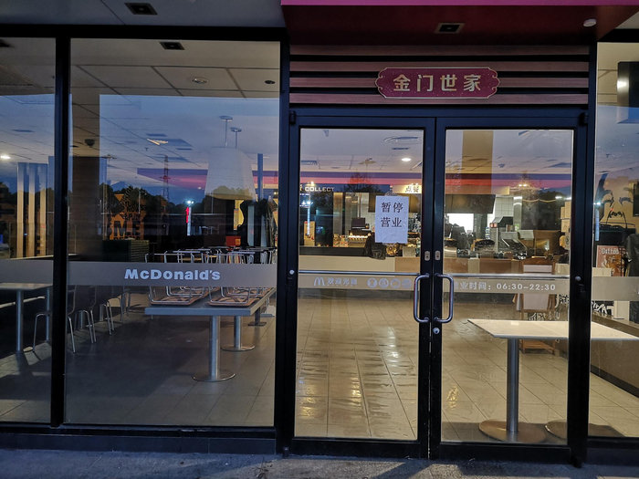 4月4日中午,王伟暂住的小旅馆边,一家小饭馆已经开门营业。虽然不能堂食,但这家小饭馆已经开始接收外卖订单了,店老板正在屋内洗菜。小饭馆旁边不远的一处宾馆内,老板娘正坐在门口玩手机。50米外的一家快餐店也开始营业了,门口站着等订单的外卖小哥。