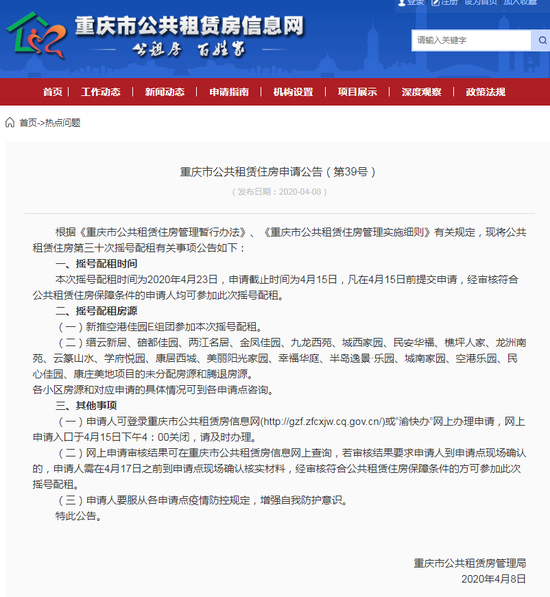 原标题:重庆市公共租赁住房申请公告(第39号)