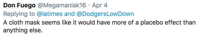 Don Fuego表示,布口罩所带来的安慰效果似乎比其他任何东西都要好。