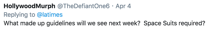 Hollywood Murph表示,下周我们将看到什么防疫方针呢?需要太空服吗?