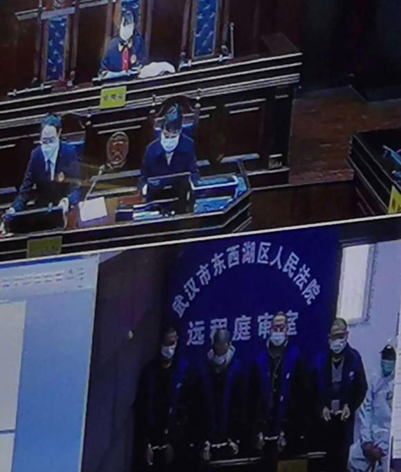 被告人不在法庭上,怎么开庭?这是东西湖法院疫情期间第一次使用远程提审系统“云”上开庭,4名被告人在看守所远程提审室大屏幕前,面对“云端”那头的法官和公诉人接受审讯。