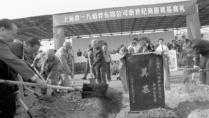 1992年9月29日中日邦交正常化20周年之际,上海第一八佰伴有限公司新世纪商厦奠基。国务院发展研究中心总干事马洪、商业部副部长白美清、上海市政府顾问汪道涵、日本驻沪总领事等出席奠基典礼。