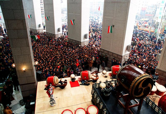 开业当天,我也去了现场。商场组织了一场日本式的开业庆典,没有程序似的讲话,而是请来日本最有名的和太鼓队,穿和服敲皮鼓,持续约半个小时。许多浦东和浦西赶来的市民等着开门,周围的张杨路和浦东南路上车水马龙,人潮拥挤。顿时上下几十部电梯全部客满。由于客人太多,每一层都有工作人员举着喇叭拼命喊,保安立在电梯口拉绳索,点着人头一点点放客人上去。