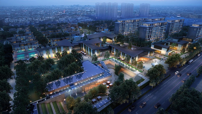 公共服务业是我们当时规划的重点,按照过去生活区的规划要求,只需要按照千人指标配建公办中小学就可以了。但是我们把这个地区作为一个城市公共服务业功能的集聚区,先后配置了高等教育、中欧国际工商学院、大型综合性医院华山东院、浦东妇产科医院、平和双语国际学校、协和国际学校、德威国际学校等,还有全国最大的社区文化体育服务中心、大型商业中心。这些设施极大提升了碧云社区的城市化强度。更重要的是,这些项目全部出自社会投资、民间投资,和政府投资的学校、幼儿园形成强烈的互补。这是一个实践中逐步认识的过程,是实践给我们提出的新挑战。我们在做具体房产项目的时候,不一定每个项目都成功,但是这不影响这个区域整体的城市化功能。