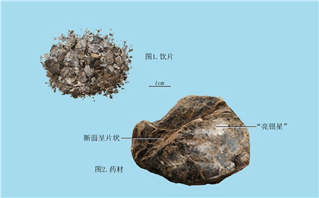 青礞石:为鳞片状或片状集合体。呈不规则扁块状或长斜块状,无明显棱角。褐黑色或绿黑色,具玻璃样光泽,气微,味淡。坠痰下气,平肝镇惊。治顽痰胶结,咳逆喘急,癫痫发狂,烦躁胸闷,惊风抽搐。主产于浙江淳安、湖南、湖北等地。
