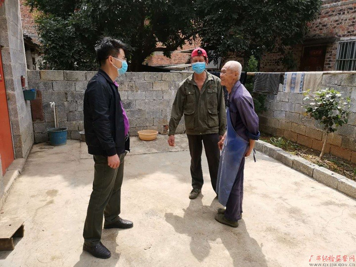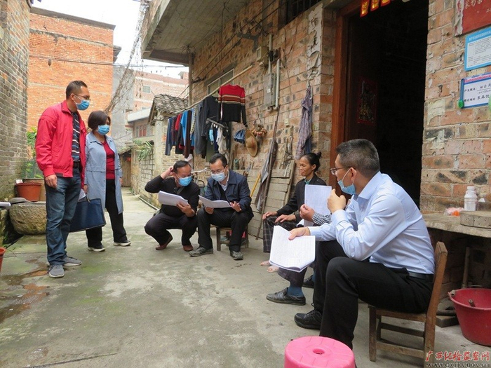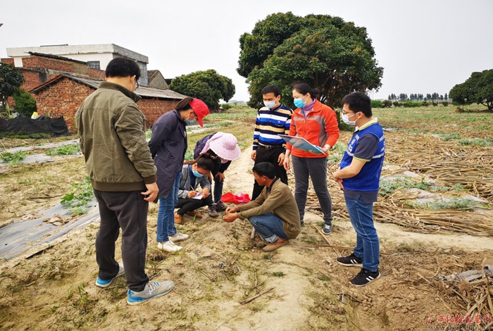 江南区纪委监委加强当地政府服务春耕生产相关政策的督促检查,积极深入扶贫种植基地、带贫企业、合作社、贫困户养殖场等一线走访督查,帮助贫困群众有序开展春耕生产、增加实际收入,把疫情影响降到最低。图为江南区纪检监察干部到江南区延安镇那齐村了解贫困户春耕生产情况。
