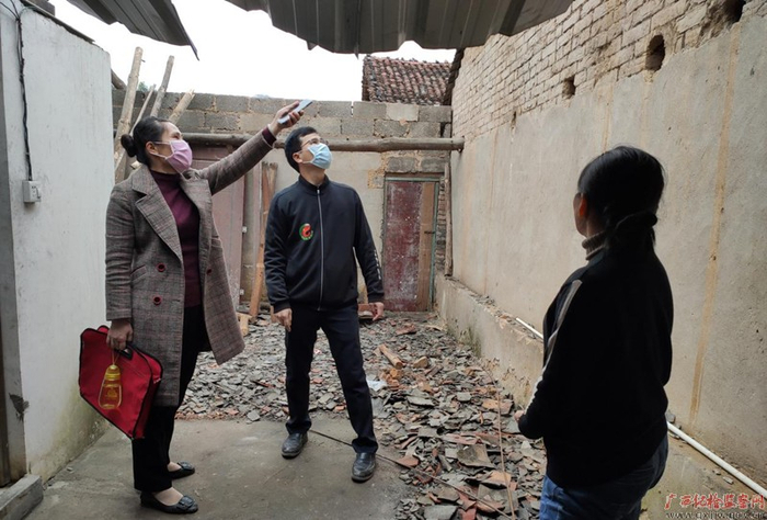 让贫困户“住有所居”是脱贫攻坚的重要内容。武鸣区纪委监委主动靠前督战危房改造,履行好监督的再监督职能,对规建部门上报的危房改造台账进行再审核、再监督,实地抽查危房改造对象户的现有危旧住房信息、家庭经济状况,对照政策精准过筛,对个别对象户申报条件提出质疑、及时纠偏,确保政策精准落地。图为武鸣区纪委监委干部林建到贫困户家中查看房屋倒塌情况。